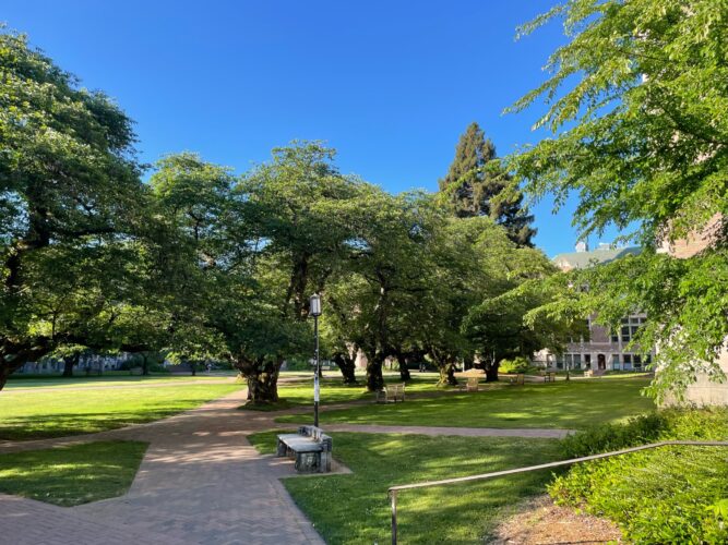 On Sunday, we headed out the door around 7 a.m. and made our way toward the University of Washington – Seattle campus. The two of us were both flabbergasted in awe of its beauty and upset that both our schools paled so hard in comparison. We also would very much like to know how UW has enough money to maintain such a campus seeing as the state does not charge income tax, so if you’re able to answer that question, please do so in the comments.